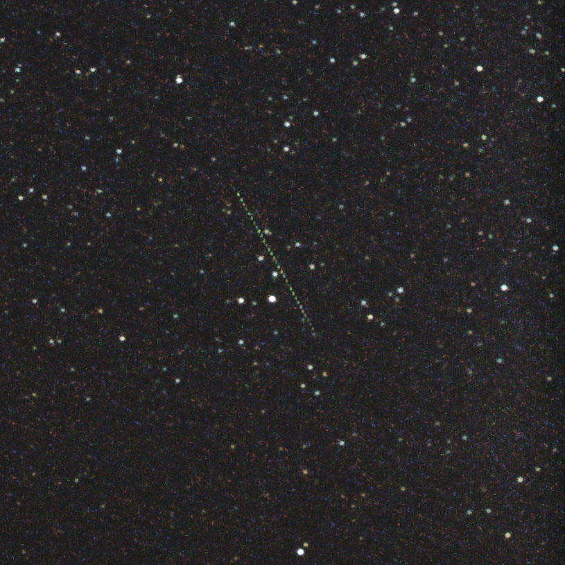 Una inspección cuidadosa de los cuadros me permitió distinguir el débil punto del ruido de fondo y las estrellas, el objeto se movía de sur a norte y parecía ruido. De no haber arruinado la exposición, o si el objeto se hubiese quedado quieto no lo hubiera notado nunca.
